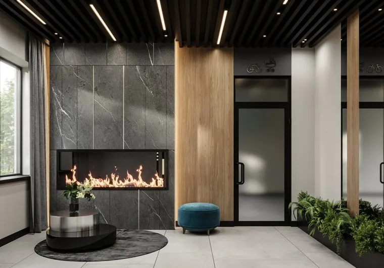 В холлах будут обустроены мягкие зоны ожидания с камином