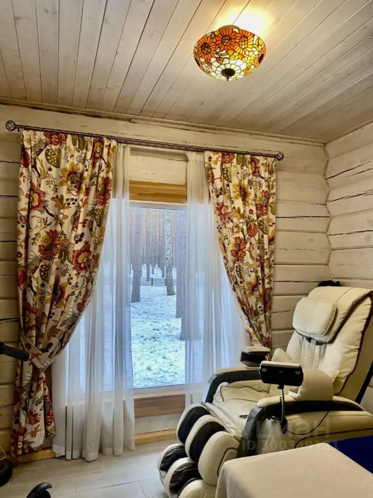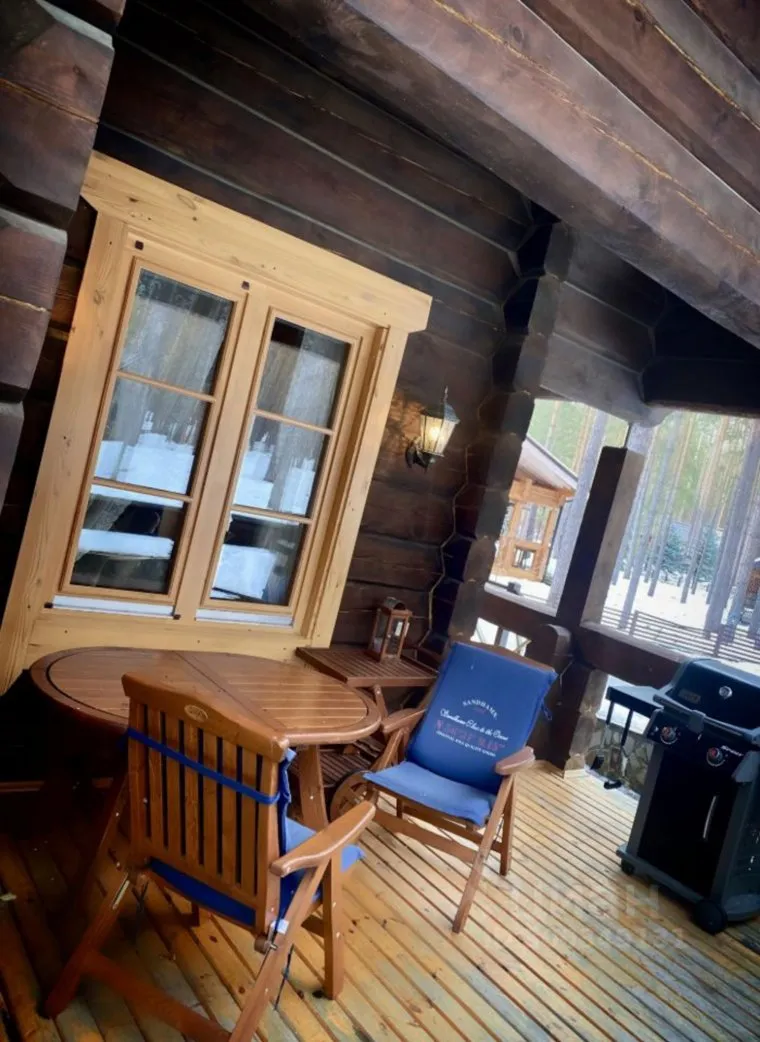 «Лесное эко-поместье рядом с озером. Бревенчатый дом в стиле загородных коттеджей Норвегии и Финляндии для большой, дружной семьи и тех, кто ищет уют, спокойствие. В доме очень тепло зимой и не жарко летом», — говорится в описании объявления. На участке сохранен лесной ландшафт, высажены декоративные кустарники. Летом там можно собирать ягоды и грибы.