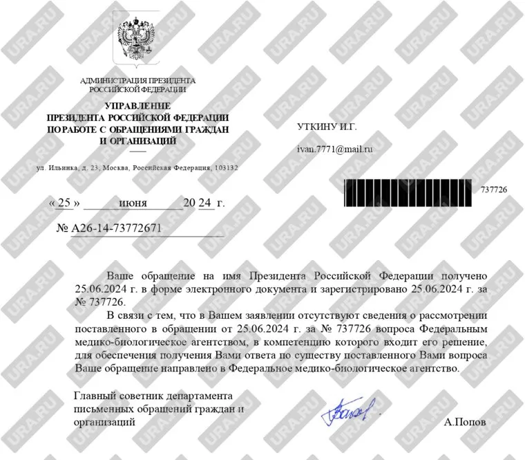 Адресатами в коллективной жалобе указаны не только Путин и Бастрыкин, но Минтруда РФ, прокурор Свердловской области Борис Крылов, Федеральное медико-биологическое агентство (ФМБА). В администрации президента заявили, что направили обращение в ФМБА. Протестующие медики убеждены, что новые руководители пользуются покровительством со стороны некоторых представителей ФМБА. Петрачков от комментариев воздержался, попросив написать в больницу. Ответ ожидается.