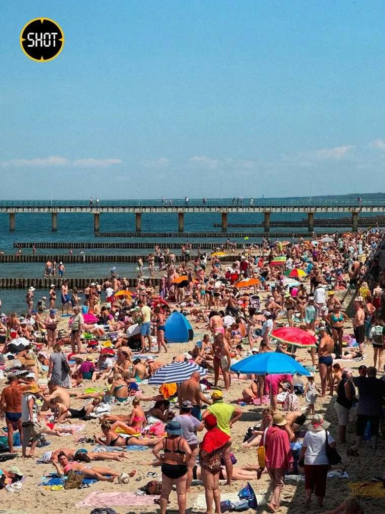 По информации Shot, в последние дни пляжи в Зеленоградске переполнены. Туристы жалуются на отсутствие свободного места.