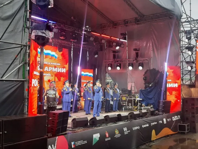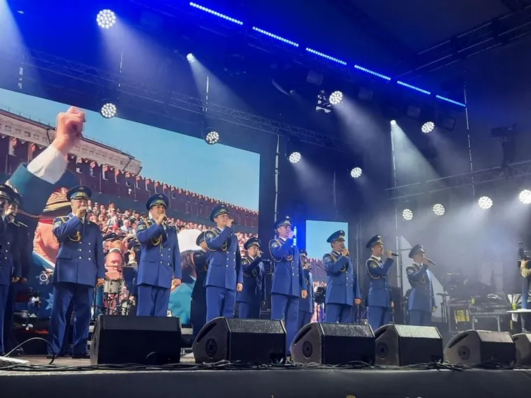 21:13 Ансамбль песни и пляски российской армии имени А.В. Александрова начинает свое выступление на Октябрьской площади.