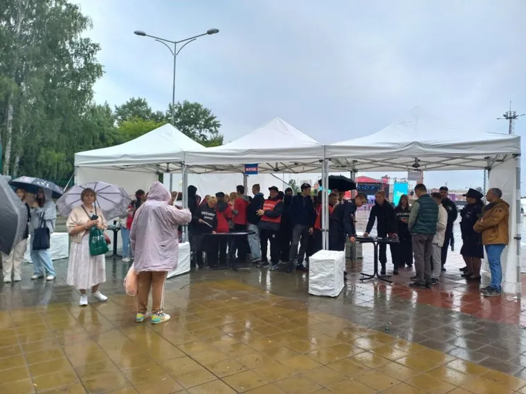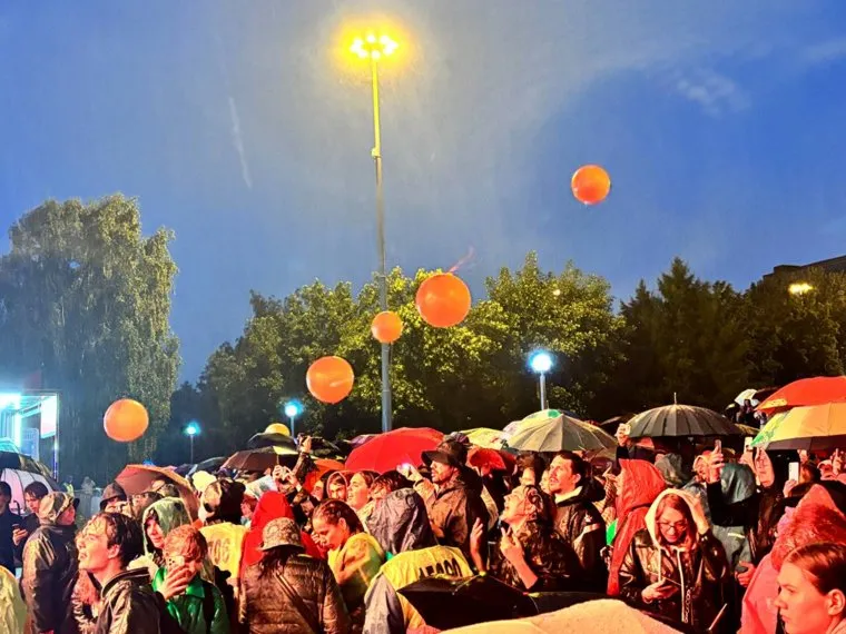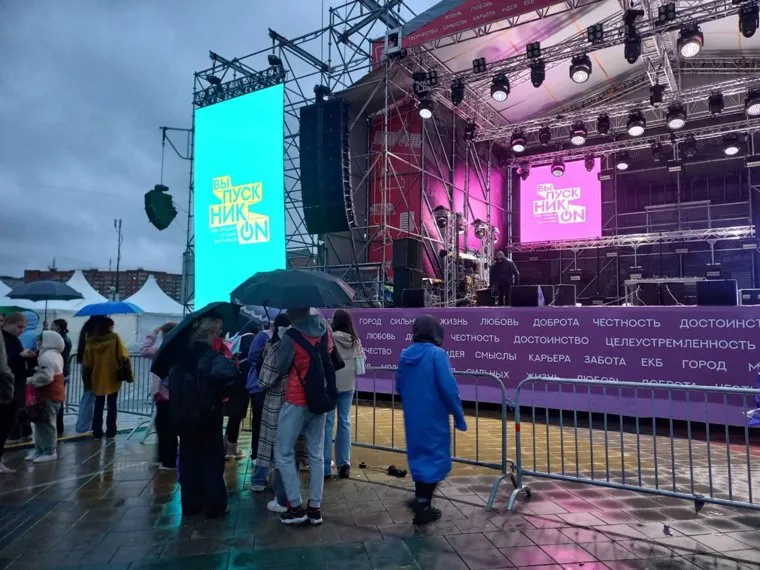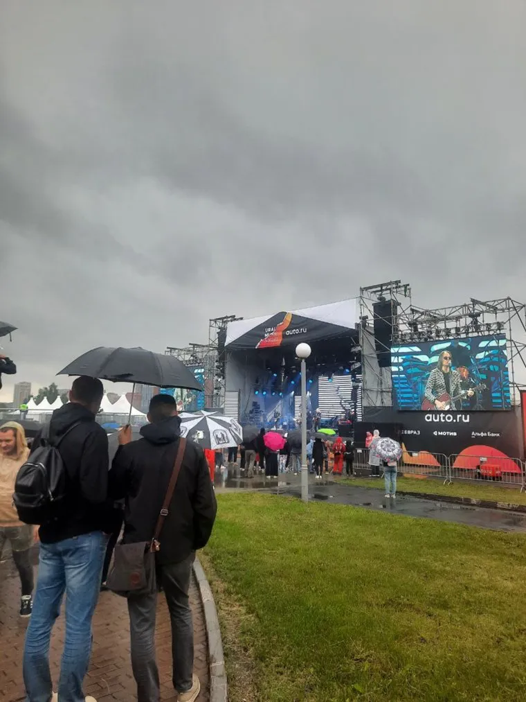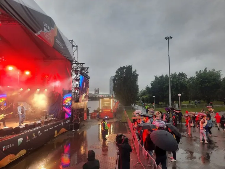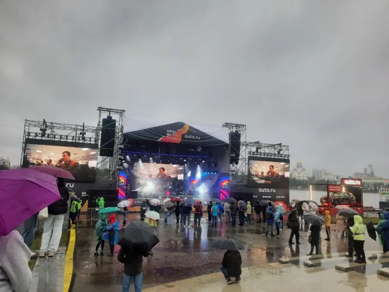 02:52 В Екатеринбурге после небольшой паузы вновь пошел дождь. Зрители вновь достали зонтики, но остались около сцены в ожидании завершающей акции.