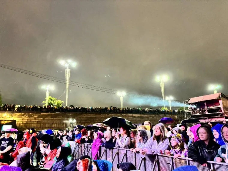 00:07 Посмотреть на выступление группы Cream Soda можно даже с плотинки, не заходя на территорию самой площадки. Многие горожане так и поступили, заполонив участок перед забором.