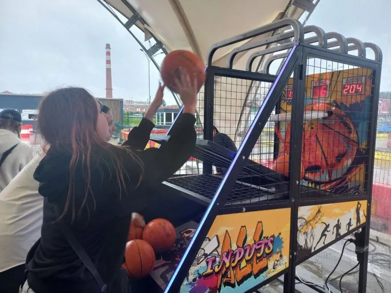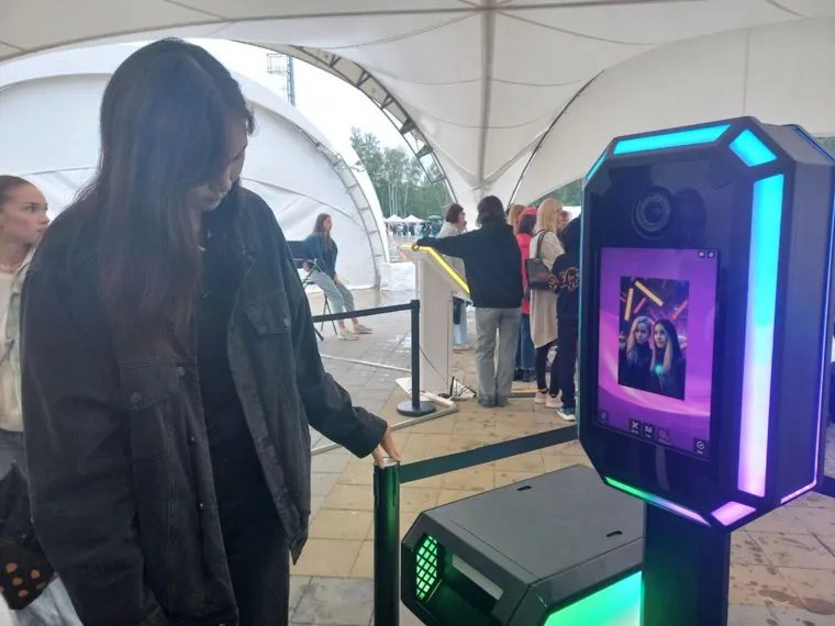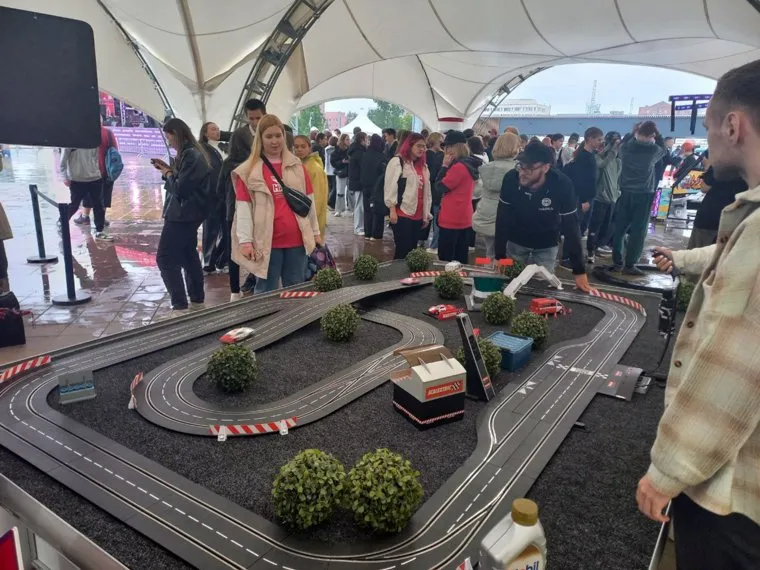 17:37 Молодежь развлекается у стенда с нейросетью, генерирующей внешность человека. Также под шатром установили мини-картинг и другие аттракционы, направленные на активность.
