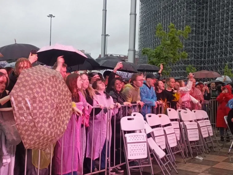 17:02 Артисты пока разогреваются. Зрители собираются у входа в фан-зону парка Маяковского.