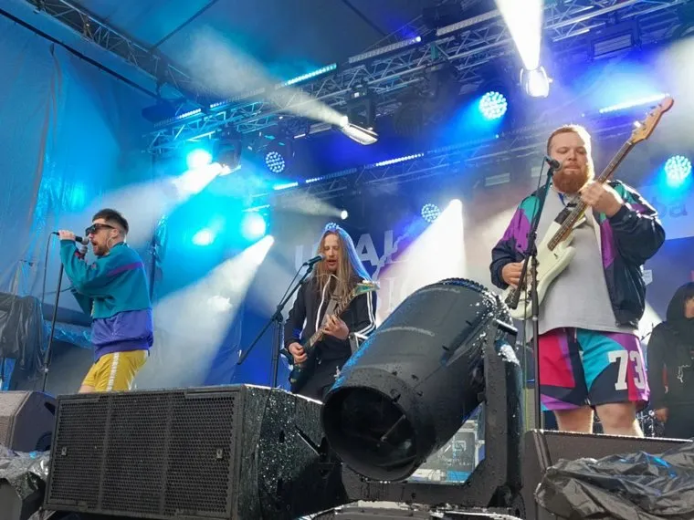 20:35 в парке Маяковского выступает группа RASA (авторы хита «Пчеловод). Первую песню, которую исполнили артисты — «Под фонарем».