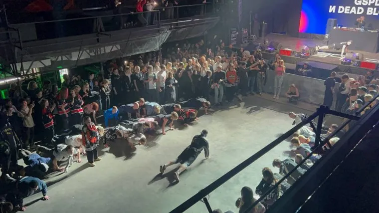 23:50 Концерт Хаски закончился. Во время выступления фанаты устроили слэм под песни «Иуда» и «Бит шатает голову».