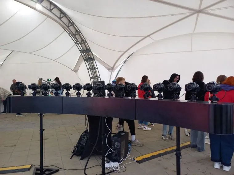 17:32 На площадке представлена зона, где можно фотографироваться в движении. Для этого организаторы установили 16 камер.