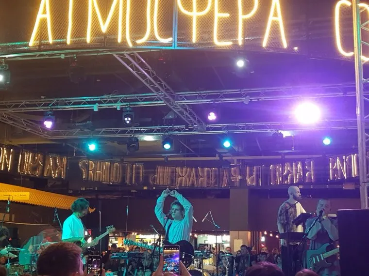 21:36 Рок-группа Sirotkin завершила выступление на фудмаркете Estory. Слушатели их провожали бурными эмоциями и аплодисментами, в конце они громко скандировали «спасибо».