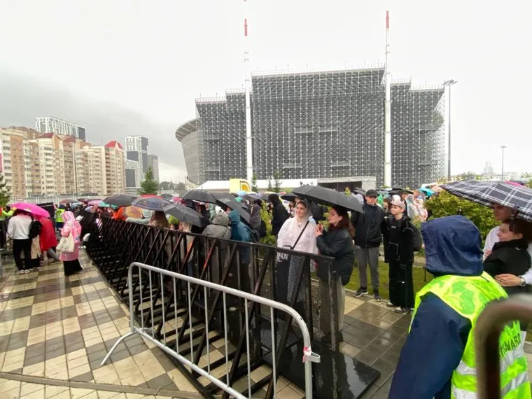 23:09 28.06.2024 Перед площадкой «ГИККОН STAGE» на стадионе «Екатеринбург Арена», где выступает Mary Gu, выстроились гигантские очереди . На площадку нельзя проносить воду в большой таре и колюще-режущие предметы. Участников досматривают перед входом.