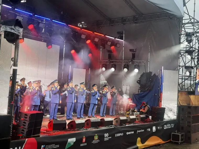 21:07 «Свинцовый туман» завершили выступление на Октябрьской площади. Зрители кричат, что хотят видеть на сцене «Ансамбль Александрова».