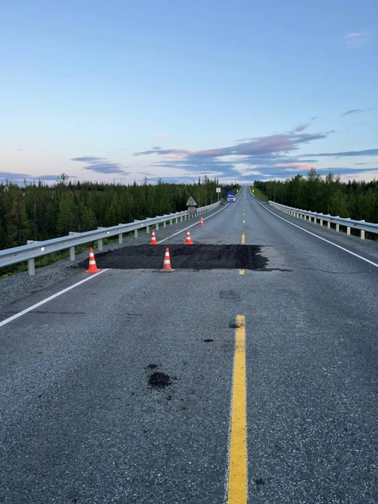 Власти ЯНАО раскрыли, когда будет устранен провал асфальта на трассе. Фото