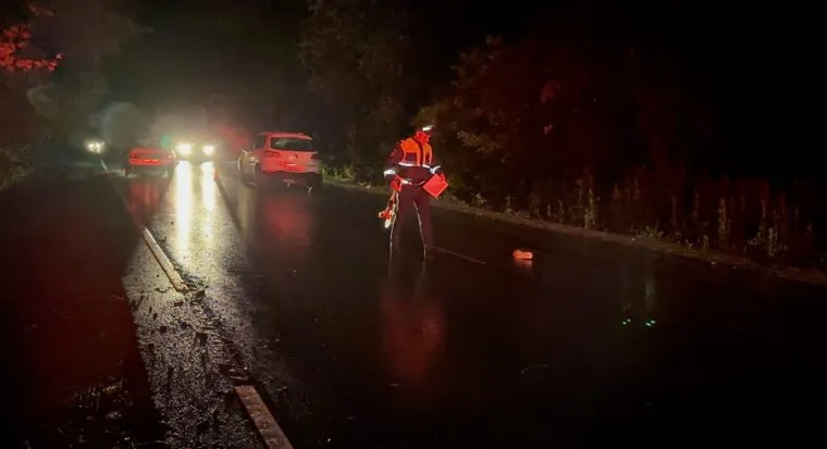 Пешеход шел по дороге в темной одежде без светоотражателей