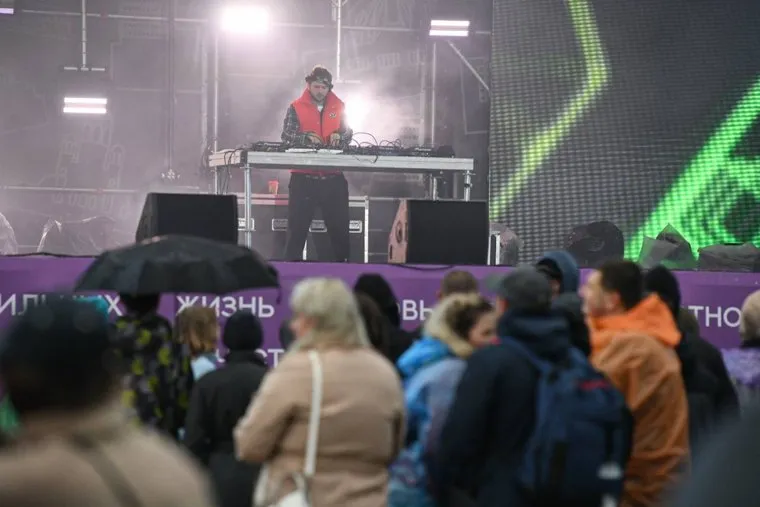 20:20 На сцену вышел DJ Руденко. «Слушатели поприветствовали артиста, а некоторые сразу же пустились в пляс», — передает обстановку корреспондент URA.RU.