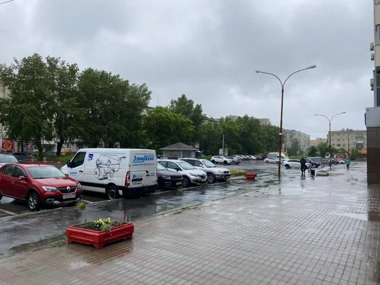 13:05 Корреспондент URA.RU делится обстановкой во время ливня в Академическом районе. Дождь продолжает топить улицы и газоны.