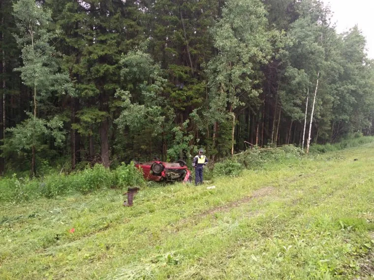 Автомобиль съехал с трассы и опрокинулся во время дождя