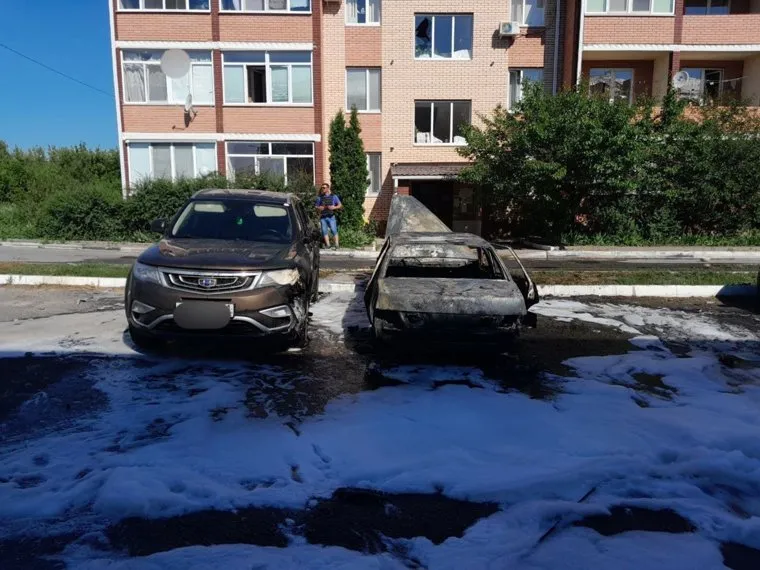«В Грайвороне БПЛА сбросил взрывное устройство на автомобиль, припаркованный возле многоквартирных домов», — Гладков в telegram-канале. В результате взрыва один автомобиль полностью сгорел, у второй машины обгорела водительская сторона. Также в одном автомобиле выбито лобовое стекло и посечен кузов.