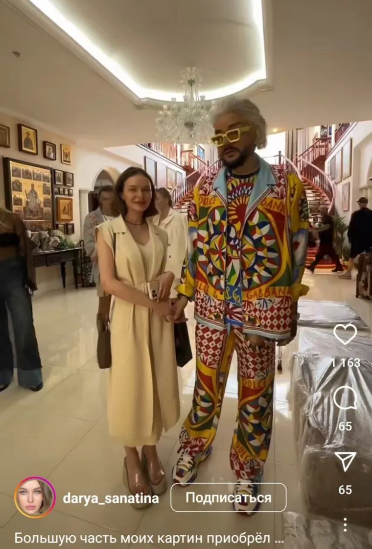 «Моим гостем стала Даша Санатина, которая привезла удивительные работы. Когда я посещал выставку в Гостином дворе, у Даши был целый стенд. Короче, это все теперь живет у меня», — заявил Филипп Киркоров на своей странице в Instagram (запрещена в РФ; соцсеть принадлежит компании Meta, которая признана экстремистской и запрещена в РФ).