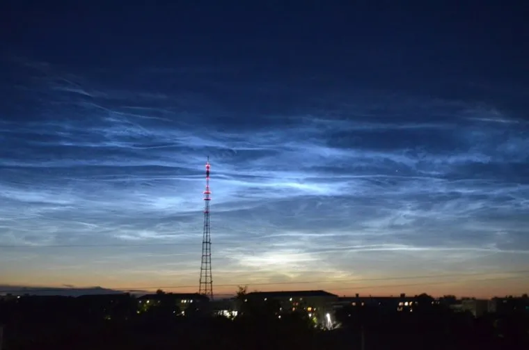 Такое атмосферное явления можно наблюдать только в июне и начале июля. Серебристые облака находятся на высоте 76-85 километров над поверхностью Земли. Они подсвечиваются солнцем, ушедшим за горизонт.