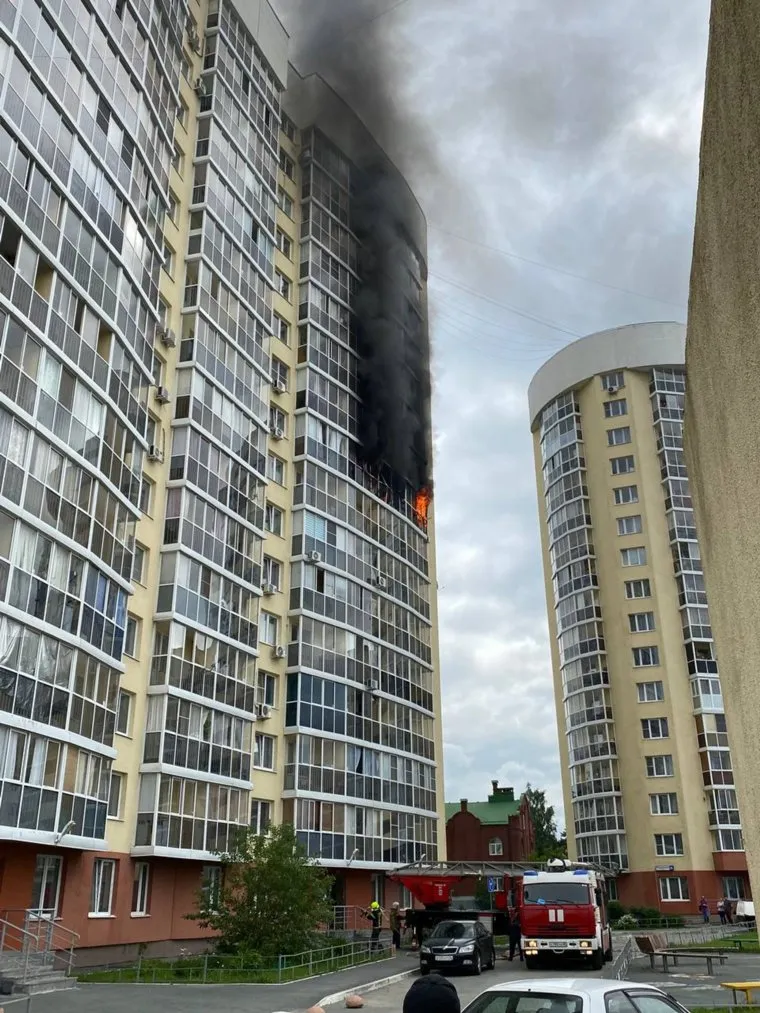 На окраине Екатеринбурга полыхает жилая высотка. Фото