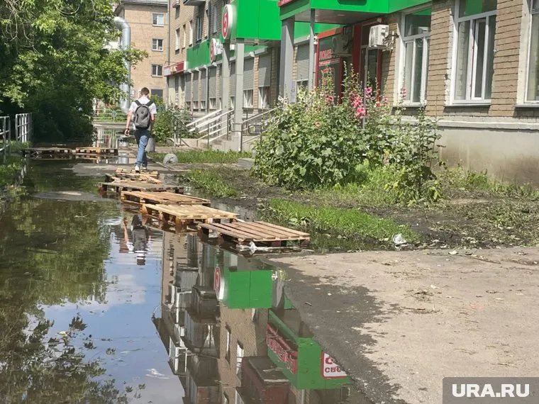 Дорогу к магазинам челябинцы выкладывают деревянными поддонами