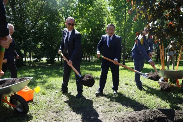 Губернатор Шумков вместе с китайской делегацией посадил дерево в горсаду. Фото
