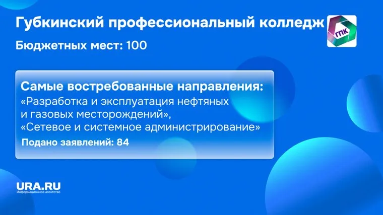 Количество бюджетных мест в Губкинском профессиональном колледже