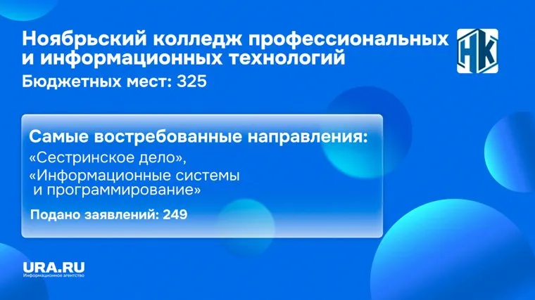 Количество бюджетных мест в Ноябрьском колледже профессиональных и информационных технологий
