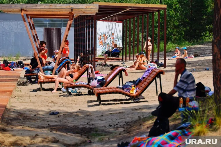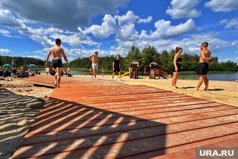«На муниципальном пляже появились лежаки и деревянные настилы к воде. Есть также качели, которые люди сразу же занимают. Они находятся под навесом, в тени. Воды в озере очень мало, оно сильно обмелело», — передает журналист URA.RU. Вся инфраструктура бесплатна, как и пребывание на самом пляже.