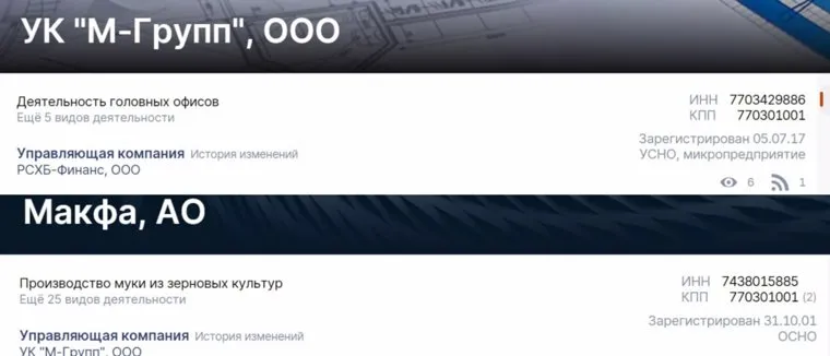 Согласно обновленным данным ЕГРЮЛ, УК «М-Групп» со 2 июля находится под управлением ООО «РСХБ-Финанс». Собственно «М-Групп» помимо ООО «Макфа» координирует также деятельность еще одного актива холдинга, ООО «Рамкон» в Московской области.