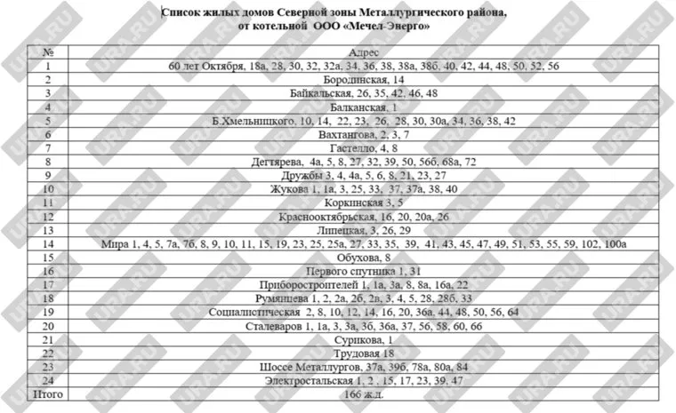 «В северной зоне Металлургического района продлен срок опрессовки. С целью проведения работ по техническому обслуживанию и обеспечению качественного и бесперебойного теплоснабжения потребителей срок проведения гидравлических испытаний в домах, обслуживаемых котельной ООО „Мечел-Энерго“, продлен до 17 июля включительно», — сообщили в мэрии.