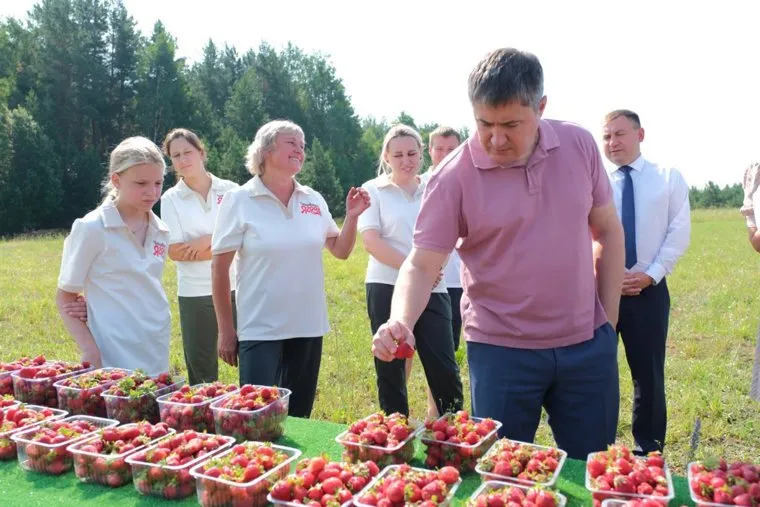 Губернатор Махонин приехал к фермеру, которая хвасталась выращенной клубникой. Фото