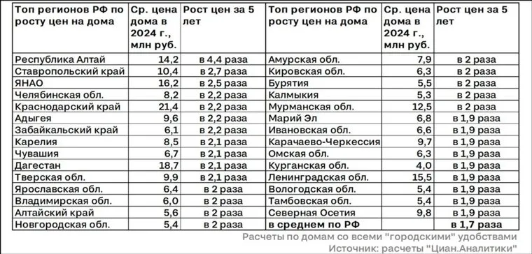 В целом за пять лет в 20 регионах РФ загородные дома подорожали в два раза. Рост зафиксирован во всех субъектах России. По стране коттеджи подорожали в городах с комфортным климатом, таких как Краснодарский и Ставропольский края, Крым, Адыгея.