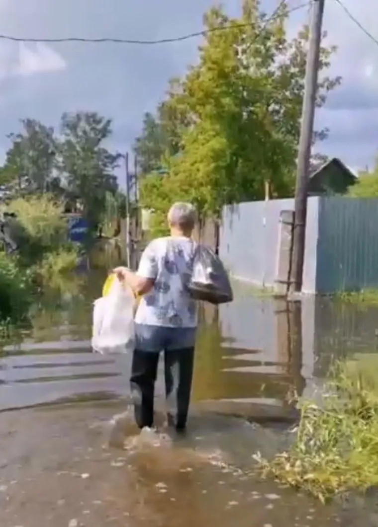 «Пробираться к домам приходиться в сапогах болотниках. На территории СНТ после паводка — воды по колено. Тут люди живут постоянно с маленькими детьми, и каждый день проходят такой путь, чтобы попасть домой», — на слова горожан ссылается telegram-канал «Курганистан».