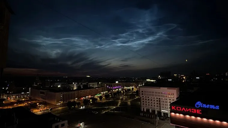 «Серебристые облака в Перми в июле», — сказано в тексте. Такие облака можно увидеть только в глубоких сумерках, сразу после заката или перед восходом Солнца.