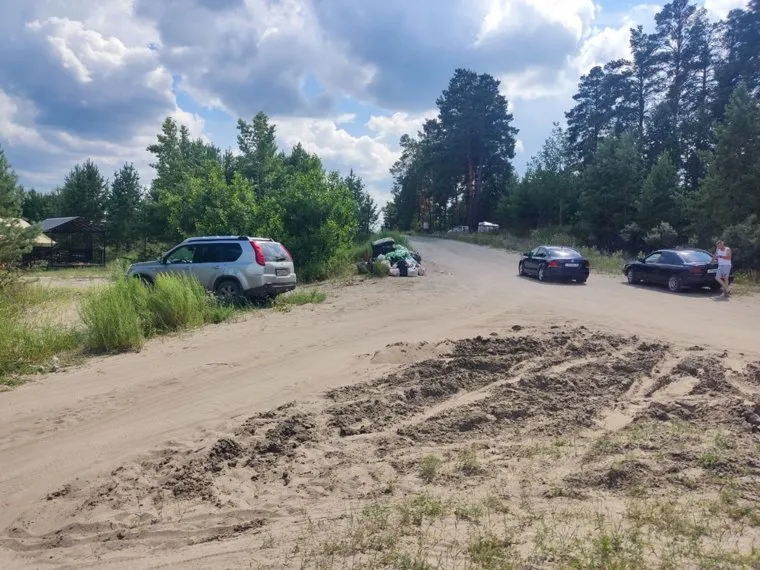 Заваленная мусором площадка рядом с базой отдыха омрачает лесной пейзаж