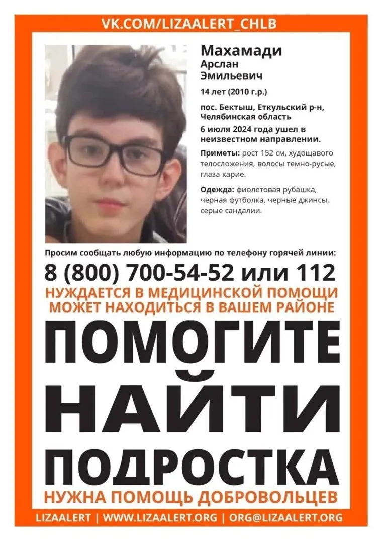 Пропавший 6 июля Махамади страдает серьезным заболеванием. Вместе с родителями школьник приехал собирать грибы, но заблудился в лесу. К 13 часам в поселке Бектыш развернули штаб добровольческого отряда «ЛизаАлерт» по региону. На помощь также прибыли коллеги из Свердловской и Тюменской областей. Совместно с отрядом и присоединившимися в поиске участвуют сотрудники МЧС и полиции.