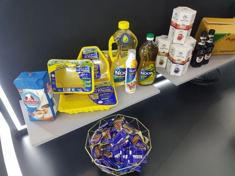 Так, посетители могут увидеть снеки: картофельные чипсы в банках со вкусом трюфеля и пармезана, шоколадные батончики с вафлей. Представлено и растительное масло, сладкие сиропы из цветков гибискуса, разные виды чая.