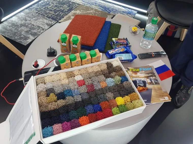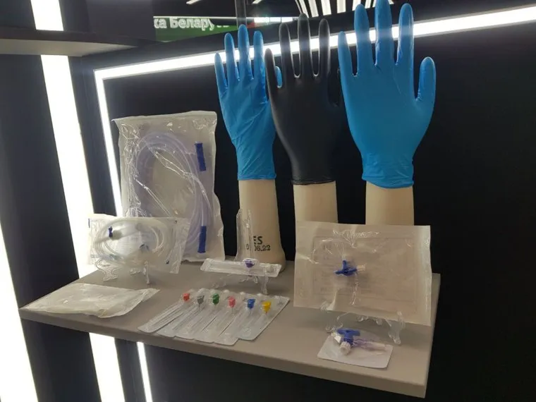 Другой производитель представил разноцветное мягкое ковровое покрытие — его можно потрогать и пройтись. Привезли арабские гости и спецодежду: ботинки разных моделей, лекарства для желудка, таблетки. Для медицинских учреждений представлены производители защитных масок, катетеры, перчатки.