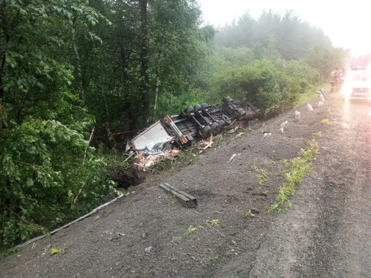 Водитель КАМАЗа с прицепом в дождь разбился в Катав-Ивановском районе. Фото