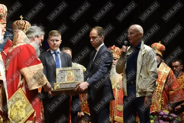 Свидетелями церемонии стали тысячи паломников со всей страны. «Находясь на месте, где 106 лет назад произошла страшная трагедия (убийство императора Николая II и его семьи — прим. ред.), есть существенный повод задуматься над значением этих событий в истории России. И глядя на образ царской семьи, особо сейчас понимается ценность семейного уклада, наших культурных, национальных ценностей, которые нам необходимо передать нашим детям и последующим поколениям… Уважаемый владыка, позвольте вас поздравить с восьмилетием монашеского пострига и по просьбе меценатов нашего города вручить святыню, <...> чтобы Свердловская область находилась под покровом этой реликвии и хранила нас», — сказал Чемезов.