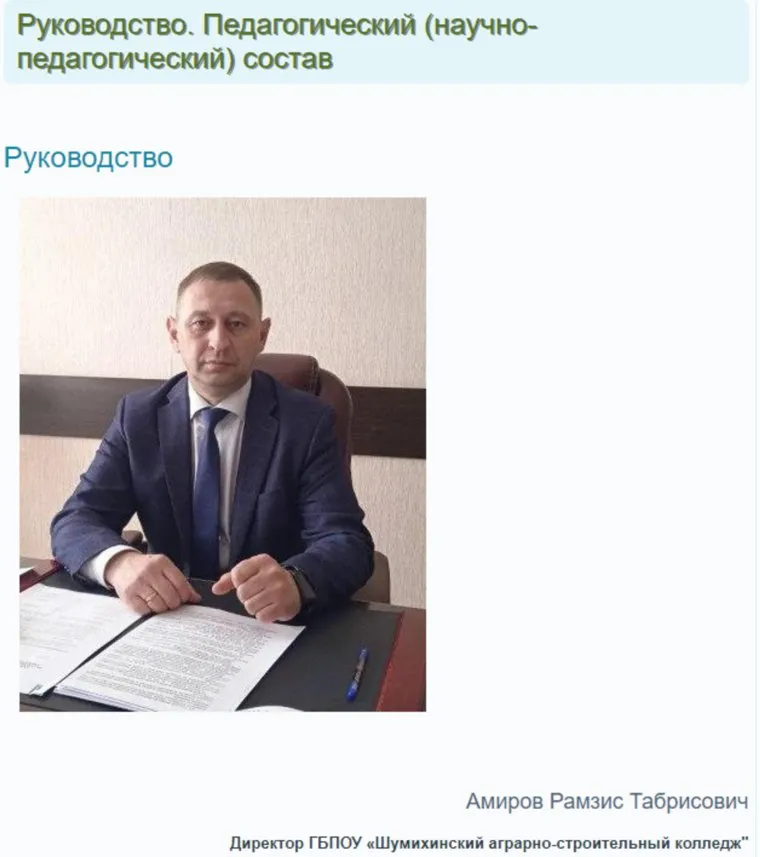 «Экс-начальник отдела полиции „Щучанский“ Рамзис Амиров возглавил Шумихинский аграрно-строительный колледж. На этом посту он сменил Сергея Бородина», — рассказал инсайдер. Информация о его назначении подтверждается на сайте учебного заведения.