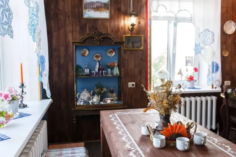 Наличие златоустовских гравюр на стенах даст понять месторасположение деревенской избы