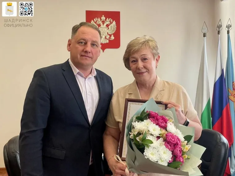 Глава Шадринска Антон Мокан поздравил руководителя отдела образования Светлану Кислицыну с выходом на пенсию