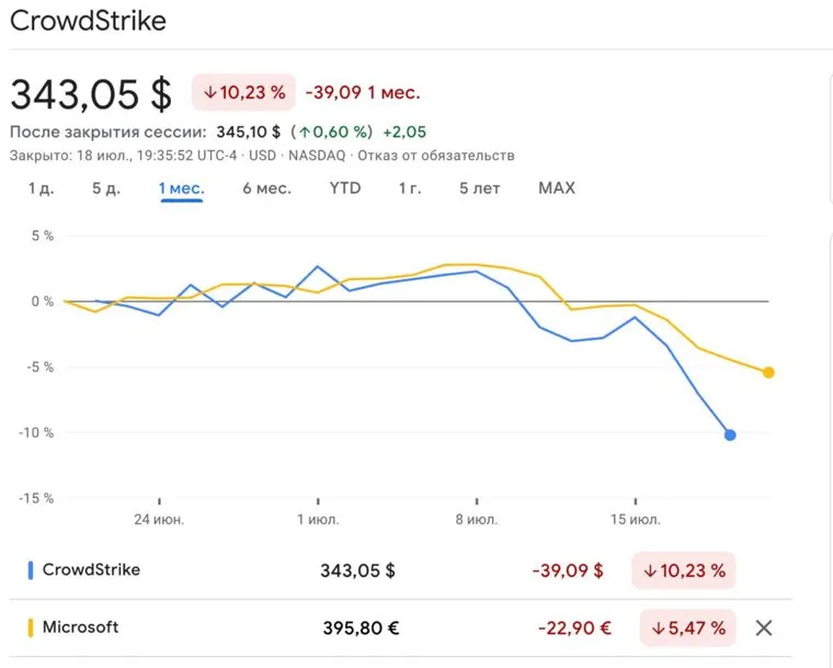 Акции Microsoft и Crowdstrike рухнули