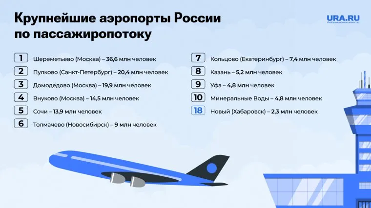 Ближайшие крупнейшие аэропорты Хабаровска — Владивосток, Южно-Сахалинск и Иркутск. По данным из открытых источников, воздушная гавань Приморья обладает пропускной способностью в 1360 пассажиров в час, Иркутска — 800 человек в час, а Южно-Сахалинска — до 1600.