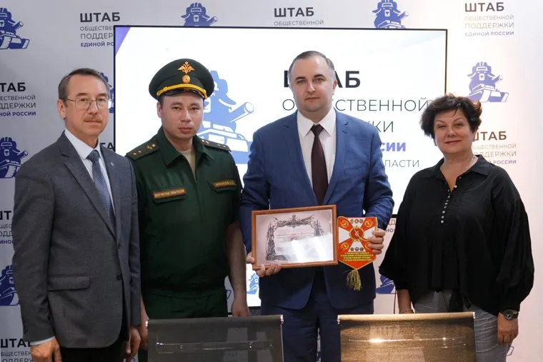 Гвардейцы 6-го танкового полка Чебаркульской танковой дивизии вручили спикеру заксобрания Челябинской области Олегу Герберу благодарность, адресованную депутатам, за помощь бойцам СВО. Об этом 22 июля сообщили в пресс-службе заксобрания.