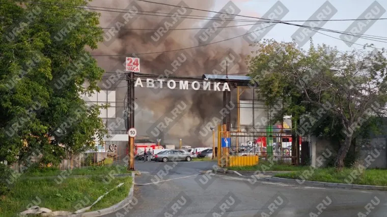 Площадь пожара, окутавшего автосервис в Екатеринбурге, увеличилась вдвое. Фото
