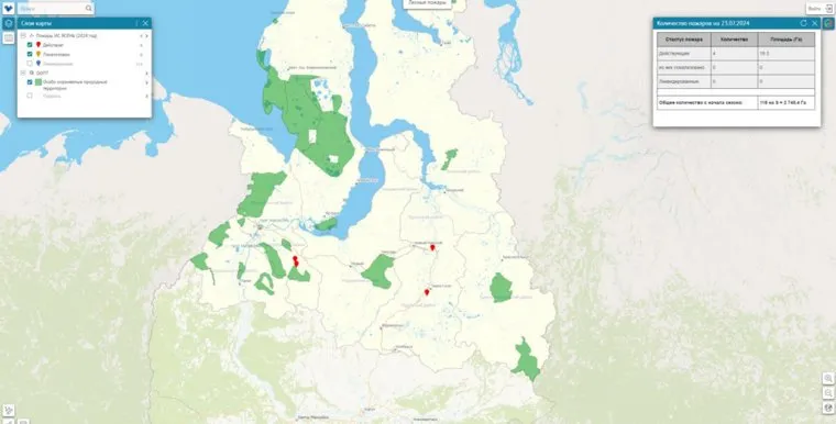 Карта действующих природных пожаров в ЯНАО на 23 июля