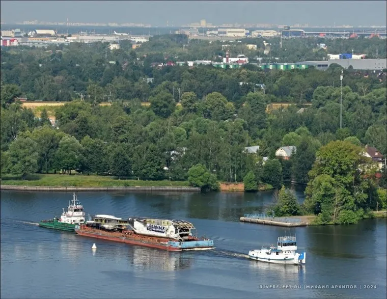 Такие же данные опубликованы в группе «Типичные Химки» в соцсети «ВКонтакте». Ее подписчики выложили фото и видео «Байкала», который они заметили в разных локациях. Как видно на кадрах, экземпляр, груженый на баржу, медленно плывет по реке.